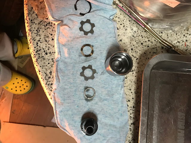 このように中はスナップリングで止まっているのでスナップリングプライヤーを使って外してやります。